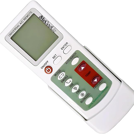 کنترل کولر گازی (Air Conditioner Remote Control) که به آن ریموت کنترل کولر گازی هم گفته میشود یک وسیله الکترونیکی کوچک است که به شما امکان میدهد تنظیمات کولر گازی خود را از راه دور کنترل کنید. این وسیله معمولاً از طریق امواج مادون قرمز (IR) با کولر ارتباط برقرار میکند، اما مدلهای جدیدتر از بلوتوث یا Wi-Fi نیز استفاده میکنند.
